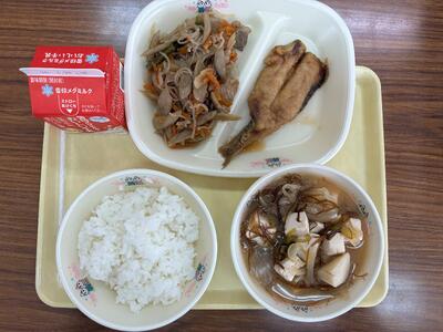 たらは冬が旬の魚です。かまぼこなどの原料にもなっています。今日は給食センターの調理員さんが、一つ一つ、たらの切り身の上にマヨネーズソースをかけて焼いてくださったそうです。おいしくいただきましょう。3年生は今日、公立高校一次募集です。みんなで応援してます!
