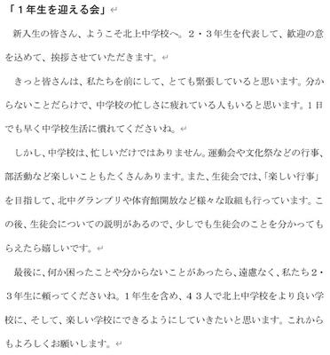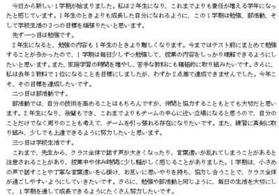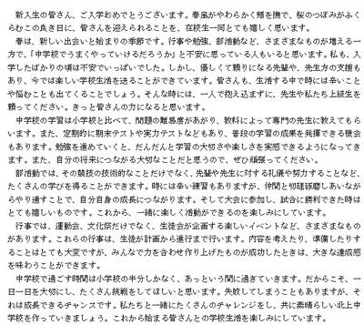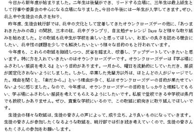 2・3年生を代表して、新入生に向けて「歓迎の言葉」がありました。
